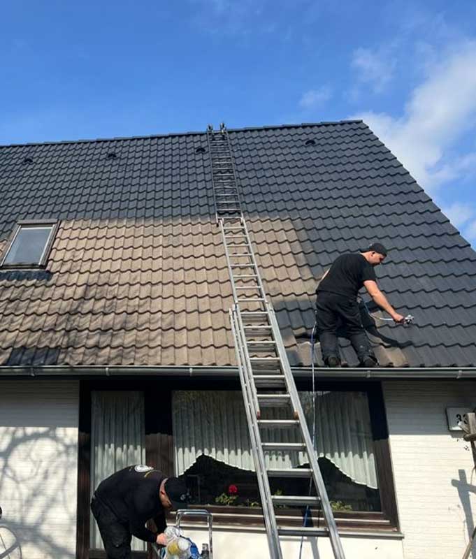 Dadurch wird verhindert, dass sich neue Ablagerungen schnell wieder festsetzen. Ihr Dach bleibt länger sauber und widerstandsfähig gegenüber Umwelteinflüssen wie Regen, Frost oder UV-Strahlung.